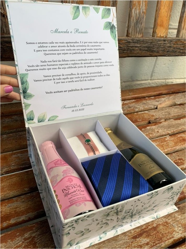 Modelo de caixa de cartonagem para convidar padrinhos de casamento