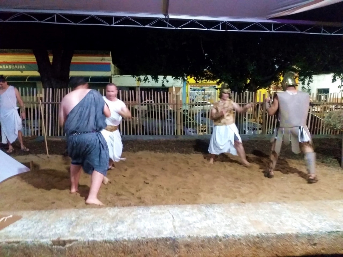 Os moradores, comerciantes, ferreiros, artistas populares, carpinteiros e artesãos são alguns dos personagens que você irá encontrar durante sua caminhada pele Belém fictícia. É possível ver artesãos trabalhando com argila, comerciantes com barracas de alimentos e dá até para sentir o cheirinho da carne sendo frita em uma grande panela de ferro. Em outro espaço são oferecidos pães aos visitantes. Outro espaço que chama muito a atenção e, é uma novidade esse ano, é a Escola de Gladiadores. O mais interessante é que é possível interagir com os mais de 140 personagens durante a visita.