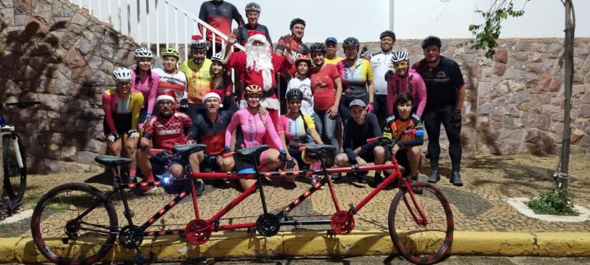 Na noite de ontem, 19, o Papai Noel do FerNatal fez um passeio inusitado pelo centro de Fernandópolis. Acompanhado por dezenas de ciclistas, o bom velhinho deu um ‘rolê’ em uma bicicleta de quatro lugares e chamou muita atenção por onde passou.