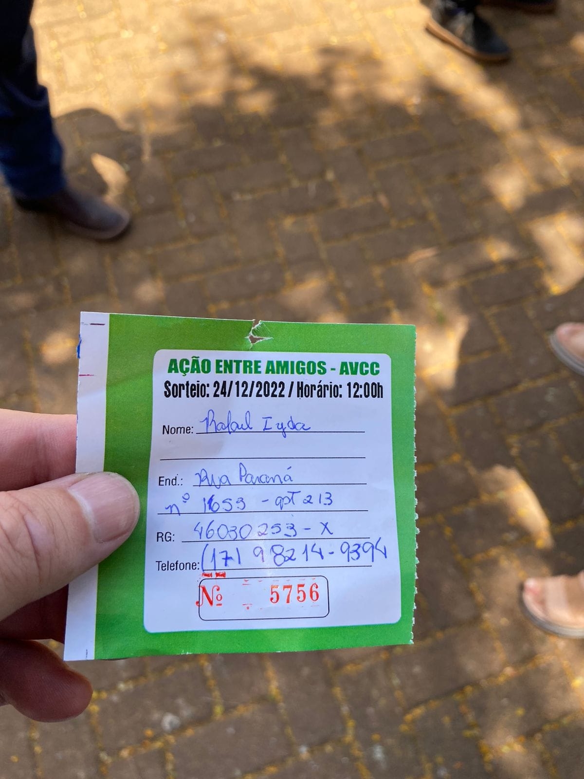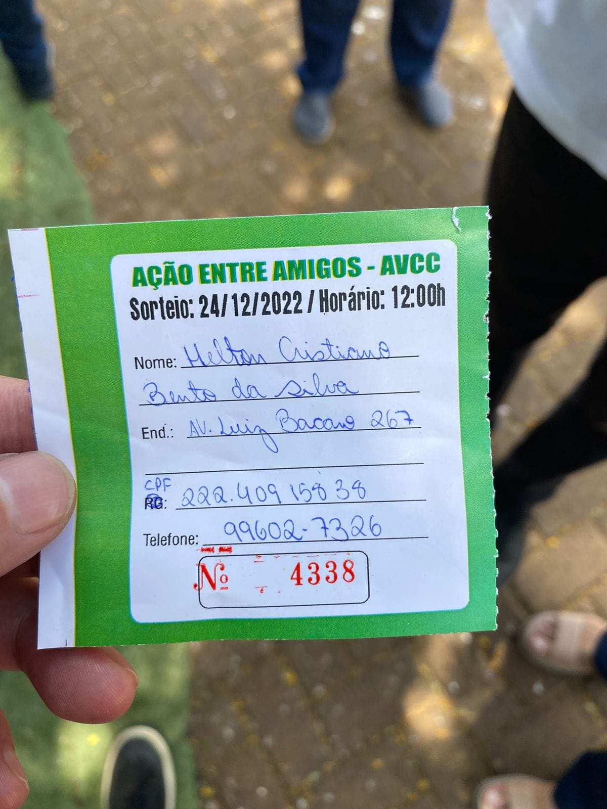 O sorteio foi realizado na Praça Joaquim Antônio Pereira com a presença de populares, voluntários da entidade, do presidente da AVCC, Jesus Silva Nogueira, o presidente do Sindicato Rural, Marcos Mazeti e o locutor Luciano de Oliveira, que foi quem comandou o sorteio.