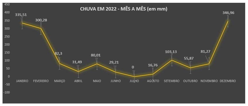 Em 2020 e 2021, o índice ficou em 780,5 mm e 731,2 mm respectivamente, segundo dados da Estação do Ciiagro. Foram os anos mais secos do período.