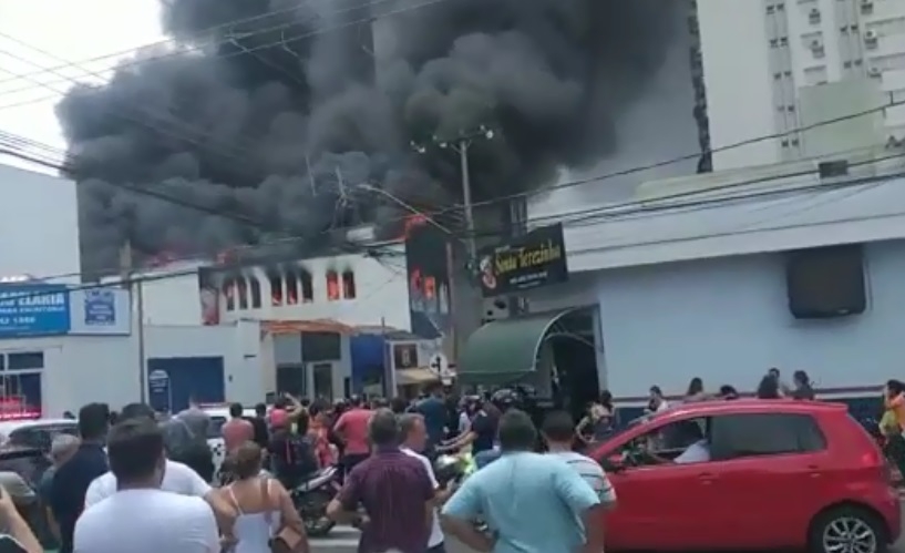 A loja, que está localizada na rua 13, região central da cidade, possui três andares e grandes janelas de vidro que estouraram com o fogo e grandes labaredas. As imagens registradas por populares mostram a imensa fumaça de cor preta que tomou conta do céu da cidade.