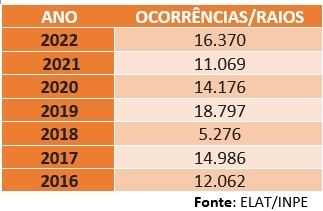 Dados do ELAT mostram aumento na incidência de raios nos últimos anos na região e, especialmente, em Fernandópolis. Em 2021, foram registrados 11.069 raios em Fernandópolis. No ano passado, esse número saltou para 16.370 raios, aumento de 48%. Esse dado só é inferior ao registrado em 2019 quando foram registrados 18.797 raios (veja quadro).