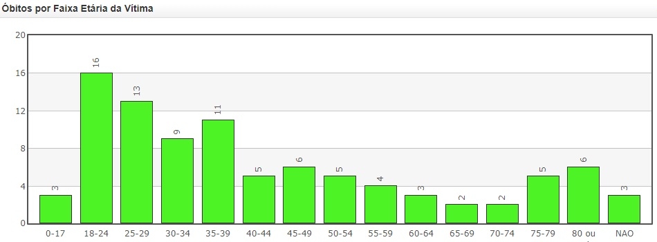 Dados do Infosiga, levantados pelo Diário da Região, mostram que no período de 8 anos, 2.358 pessoas morreram vítimas de acidente de trânsito na região noroeste. A faixa etária com mais vítimas é de jovens entre 18 e 24 anos, com 316 óbitos. Entre 25 e 29 anos, faixa ainda considerada jovem, foram registradas 239 mortes.
