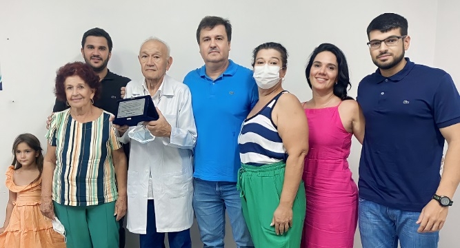 O nome do médico Aer José Trindade está gravado no pronto-socorro da Santa Casa, onde ele passou parte de sua vida nos plantões durante 52 anos. “É o sentimento do dever cumprido”, disse o médico ao lado dos familiares.