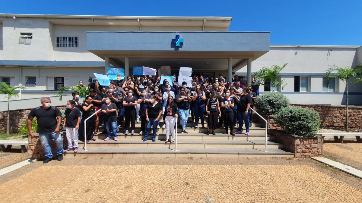 Manifestação dos funcionários da Santa Casa na manhã de hoje