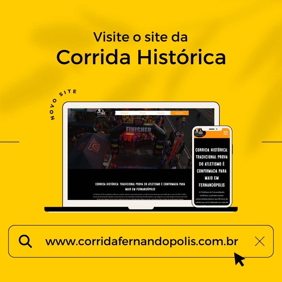 A 6ª edição da Corrida Histórica de Fernandópolis lançou na última semana o site oficial do evento com informações sobre a história do evento, fotos, todas as novidades da atual edição e o link para as inscrições da corrida que acontece no dia 20 de maio. O endereço eletrônico é o corridafernandopolis.com.br.