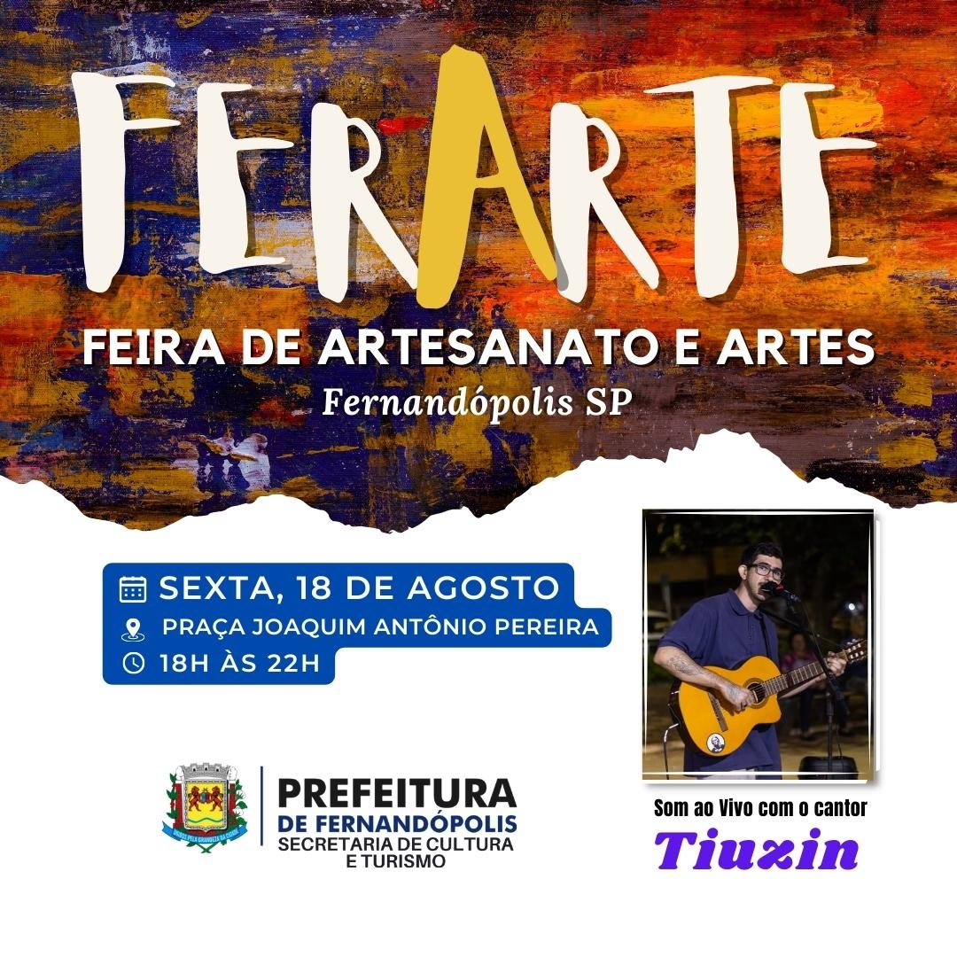 Coordenado pela Secretaria Municipal de Cultura e Turismo, a FerArte também irá contar com uma apresenta musical com o cantor Tiuzin, praça de alimentação com mesas e cadeiras e brinquedos para as crianças. A primeira edição da feira aconteceu no dia 5 de maio e recebeu um grande público que foi prestigiar o trabalho dos artesãos da cidade.