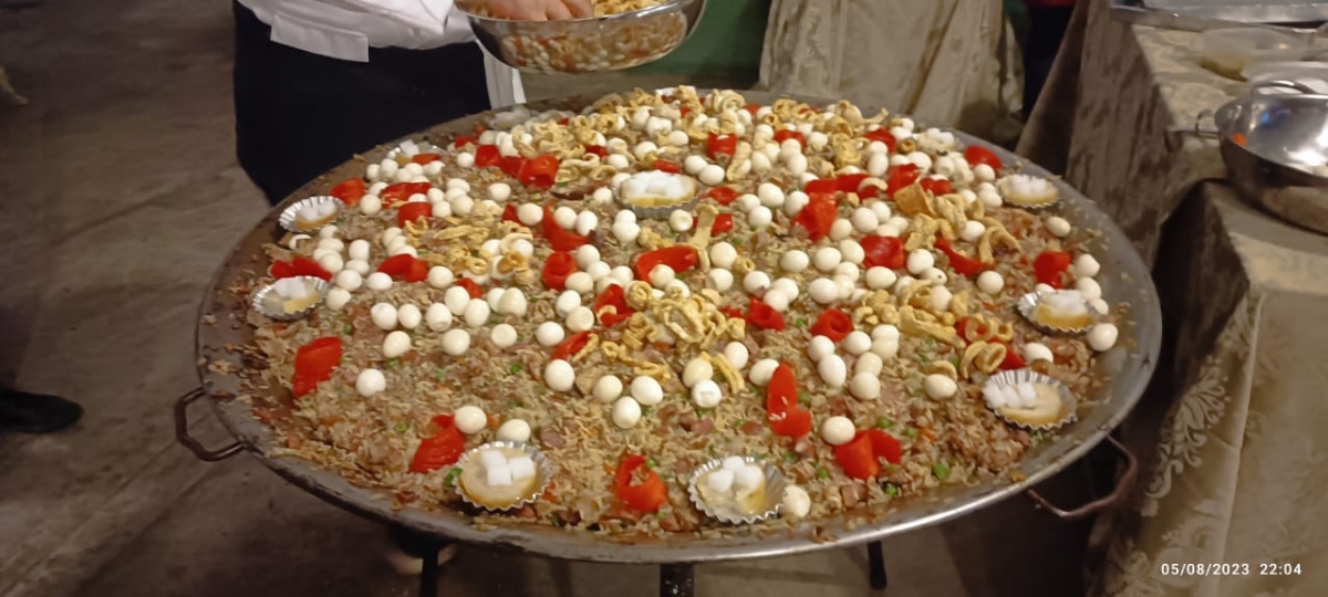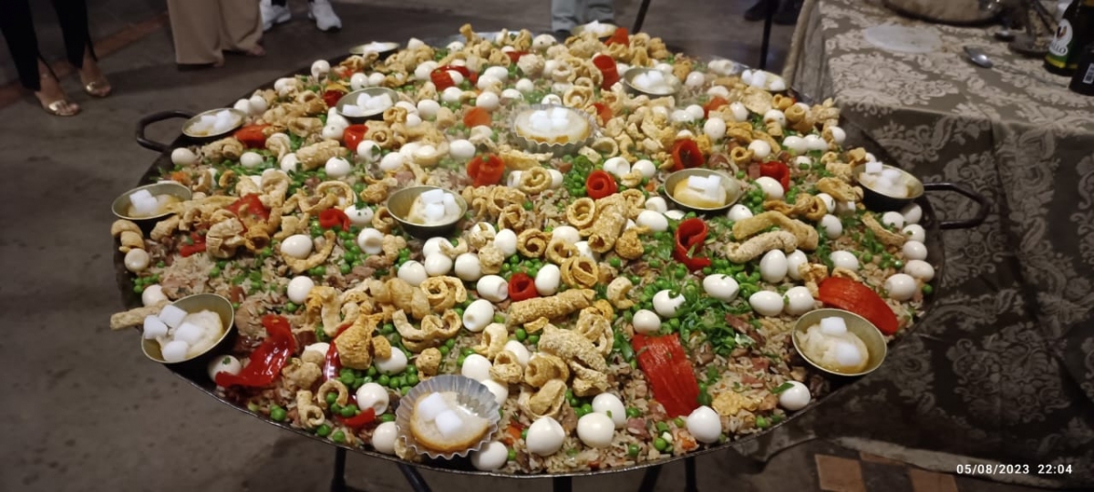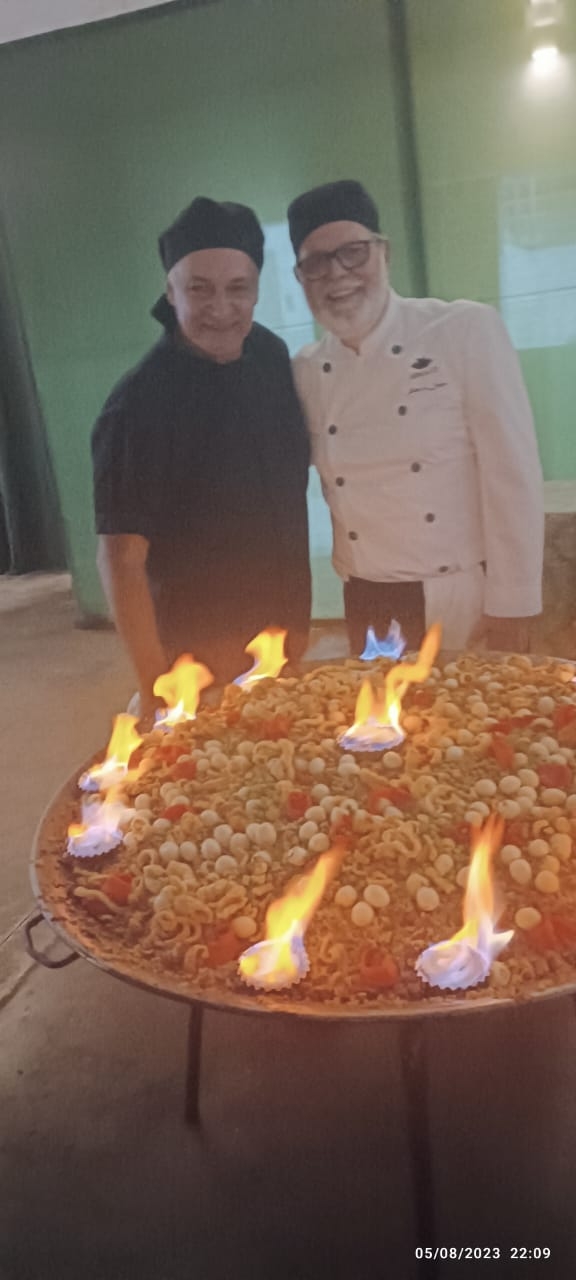 O prato principal foi preparado ao vivo no salão em grandes tachos, o que chamou a atenção dos convidados. Para a animar a noite Serginho Kamiyama fez um show especial embalar o jantar.