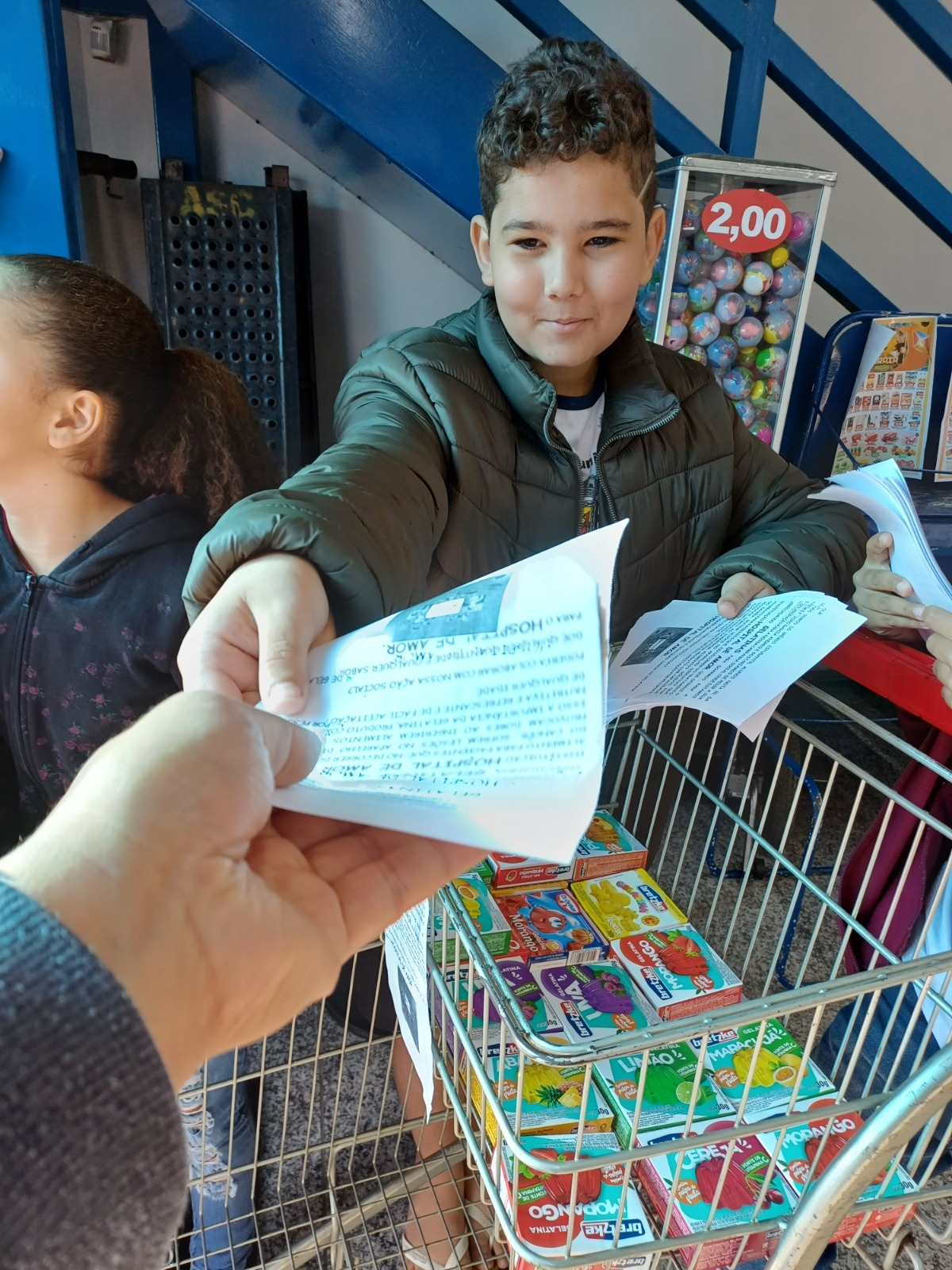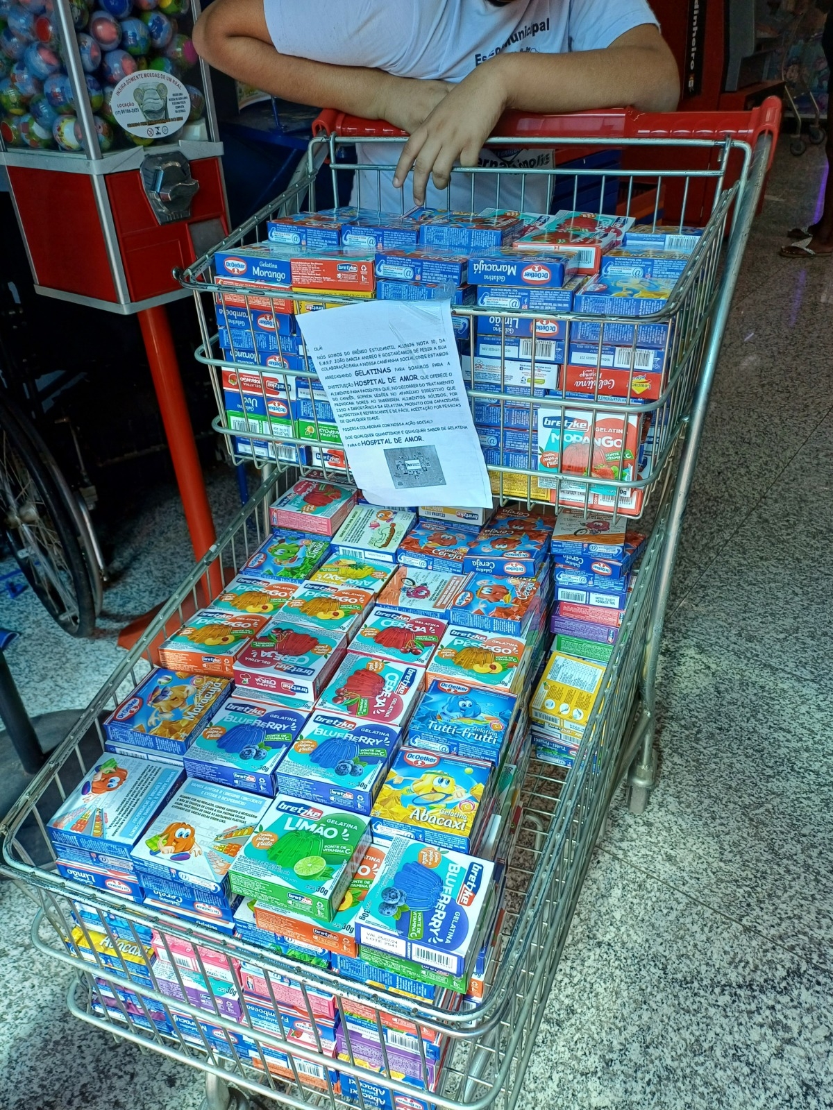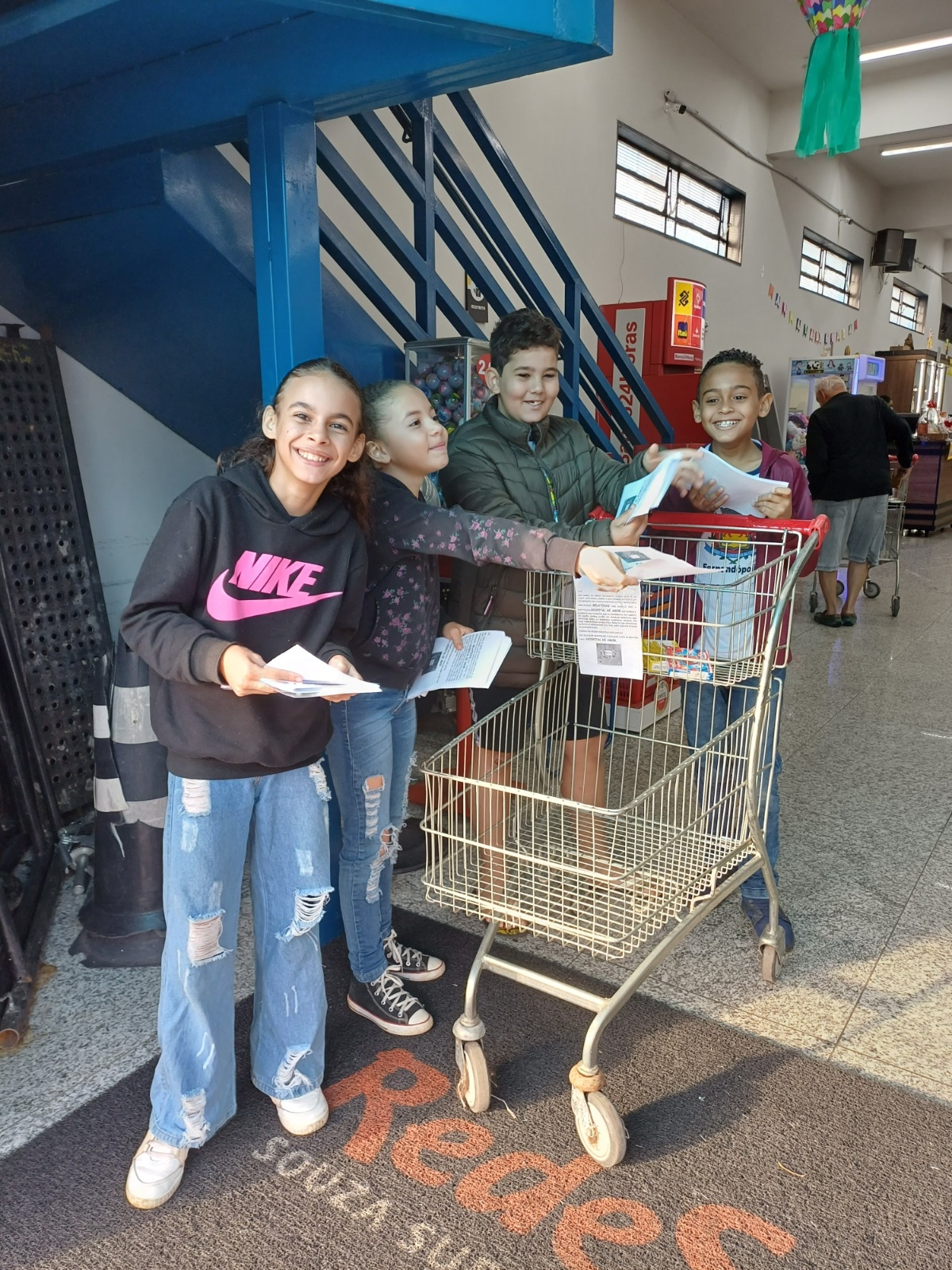 A campanha foi ampliada com o apoio de um mercado que permitiu a presença dos alunos e divulgação da ação para pedir a colaboração dos clientes, que se solidarizaram e fizeram suas doações de gelatina.