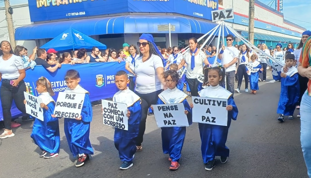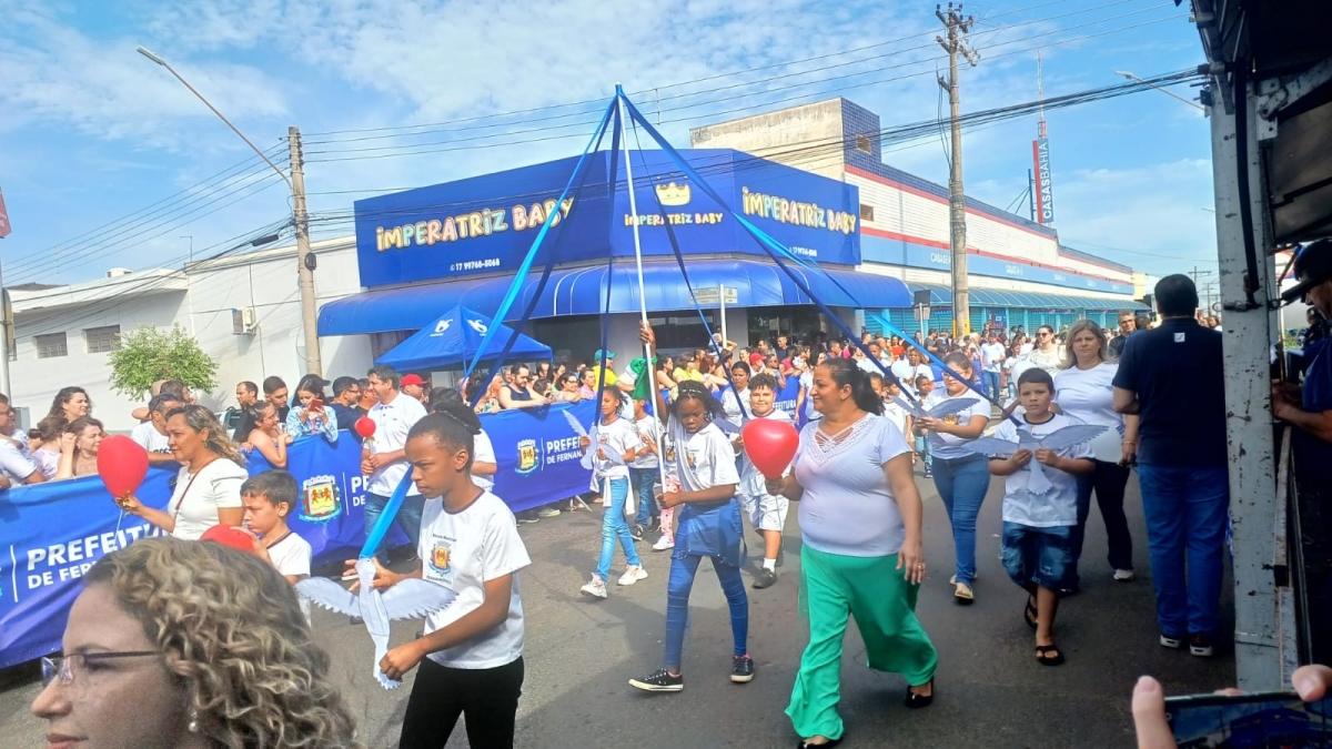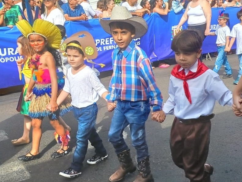 O desfile de 7 de setembro na Rua Brasil em Fernandópolis mobiliza estudantes das redes municipal, estadual e particular, clubes de serviços, secretarias municipais, projetos educacionais e outros segmentos da sociedade civil organizada , além do Tiro de Guerra, policiamento, motociclistas e carros antigos.