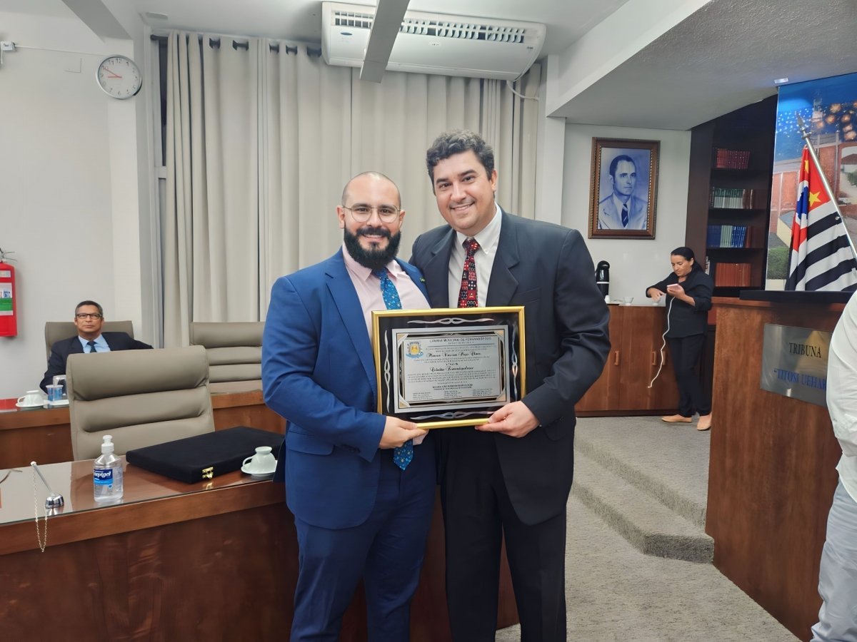Em cerimônia realizada pela Câmara Municipal de Fernandópolis na noite desta terça-feira, 25, o provedor da Santa Casa de Fernandópolis, Marcus Chaer, foi homenageado com o "Título de Cidadão Fernandopolense". Trata-se de uma das mais notáveis honrarias concedidas pelo Legislativo da cidade, por meio de Decreto proposto pelos vereadores Murilo Jacob Filho e Jeferson Paiva.