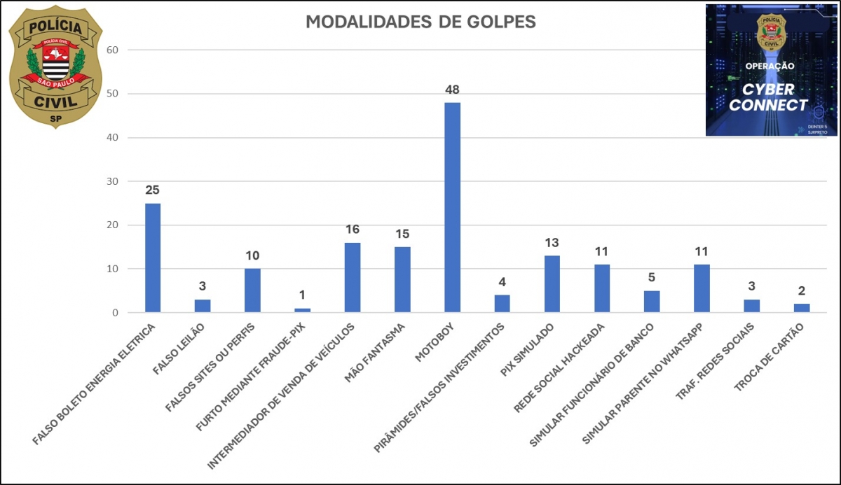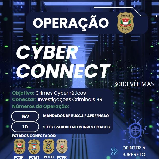 A Operação Interestadual CyberConnect para o Enfrentamento Qualificado de Crimes Eletrônicos, foi deflagrada a partir de projeto de conexão cibernética desenvolvido pela Polícia Civil da região de São José do Rio Preto-SP, coordenadas pelo DEINTER 5 e execução pelas Delegacias territoriais, especializadas e equipes vinculadas à Delegacia Seccional de Polícia de Fernandópolis; Delegacia Seccional de Polícia de São José do Rio Preto; Delegacia Seccional de Polícia de Catanduva; Delegacia Seccional de Polícia de Jales; Delegacia Seccional de Polícia de Novo Horizonte; Delegacia Seccional de Polícia de Votuporanga e Divisão Especializada de Investigações Criminais - Deic 5, com suporte de inteligência dos respectivos analistas de inteligência dos Centros e Unidade de inteligência da PCSP.