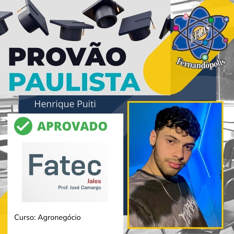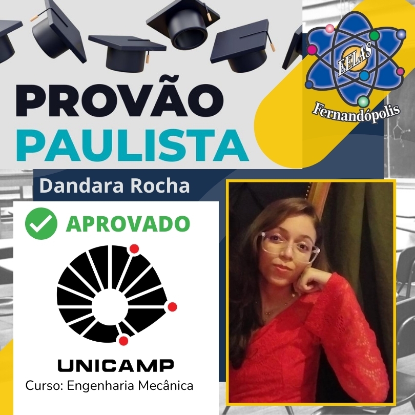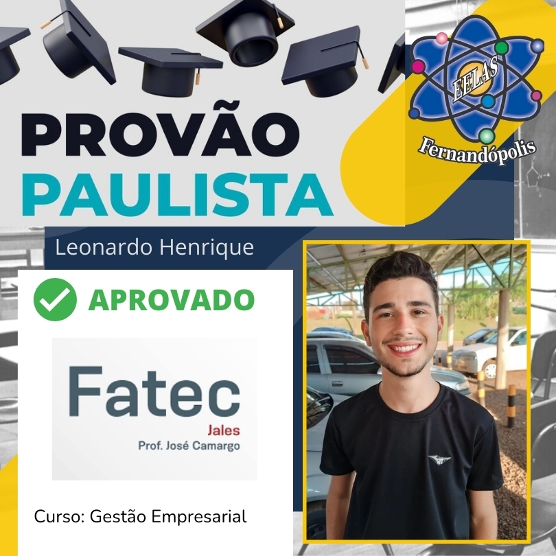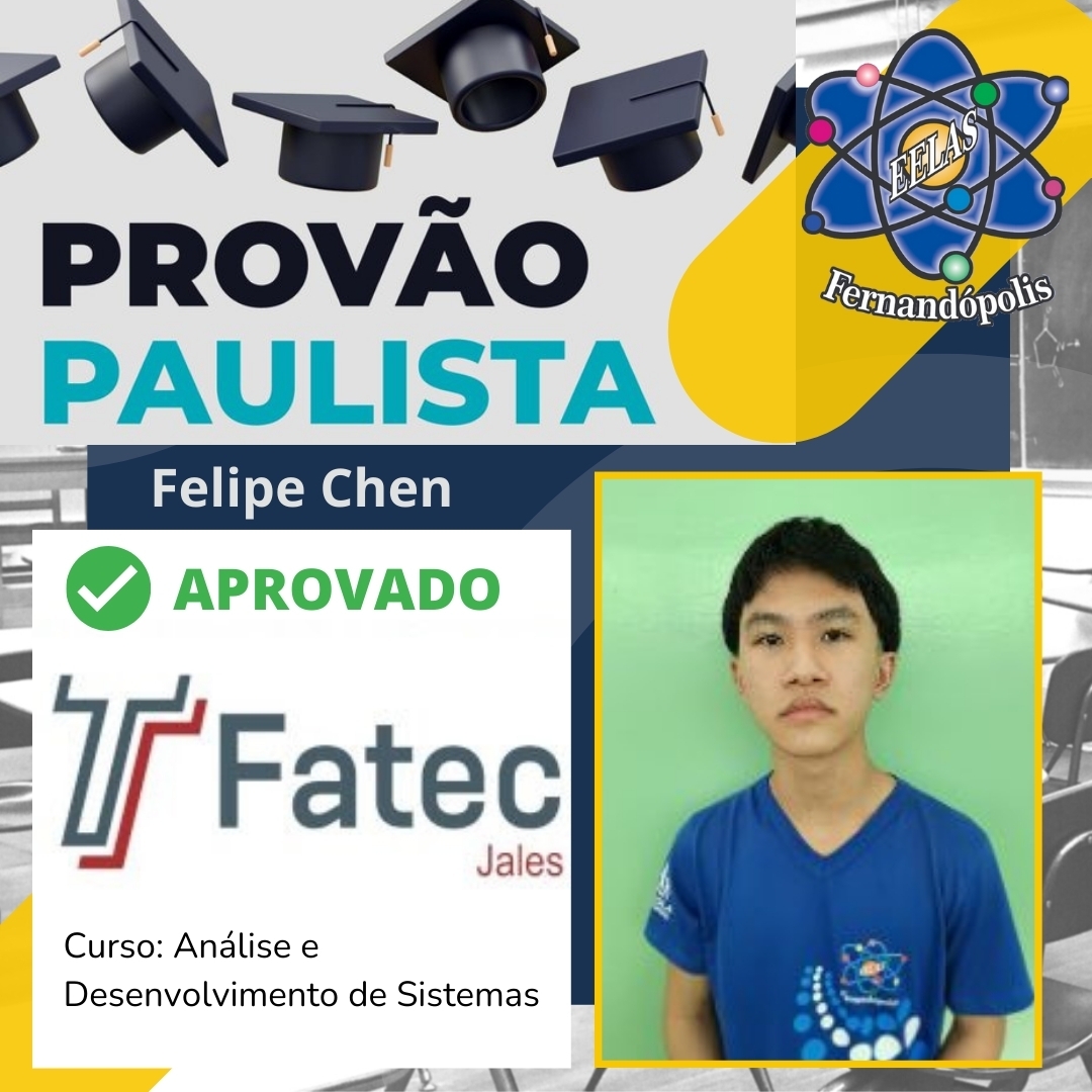 Cinco alunos da EELAS – Escola Estadual Líbero de Almeida Silvares – garantiram vagas com as notas alcançadas. São eles: Lucas Pereira garantiu vaga no curso de Matemática Aplicada e Computacional da USP e no curso de Análise e Desenvolvimento de Sistemas da Fatec; Dandara Rocha garantiu vaga em Engenharia Mecânica da Unicamp e Sistemas para Internet na Fatec; Felipe Chen em Análise e Desenvolvimento de Sistemas da Fatec; Leonardo Henrique em Gestão Empresarial da Fatec; e Henrique Puiti em agronegócio.