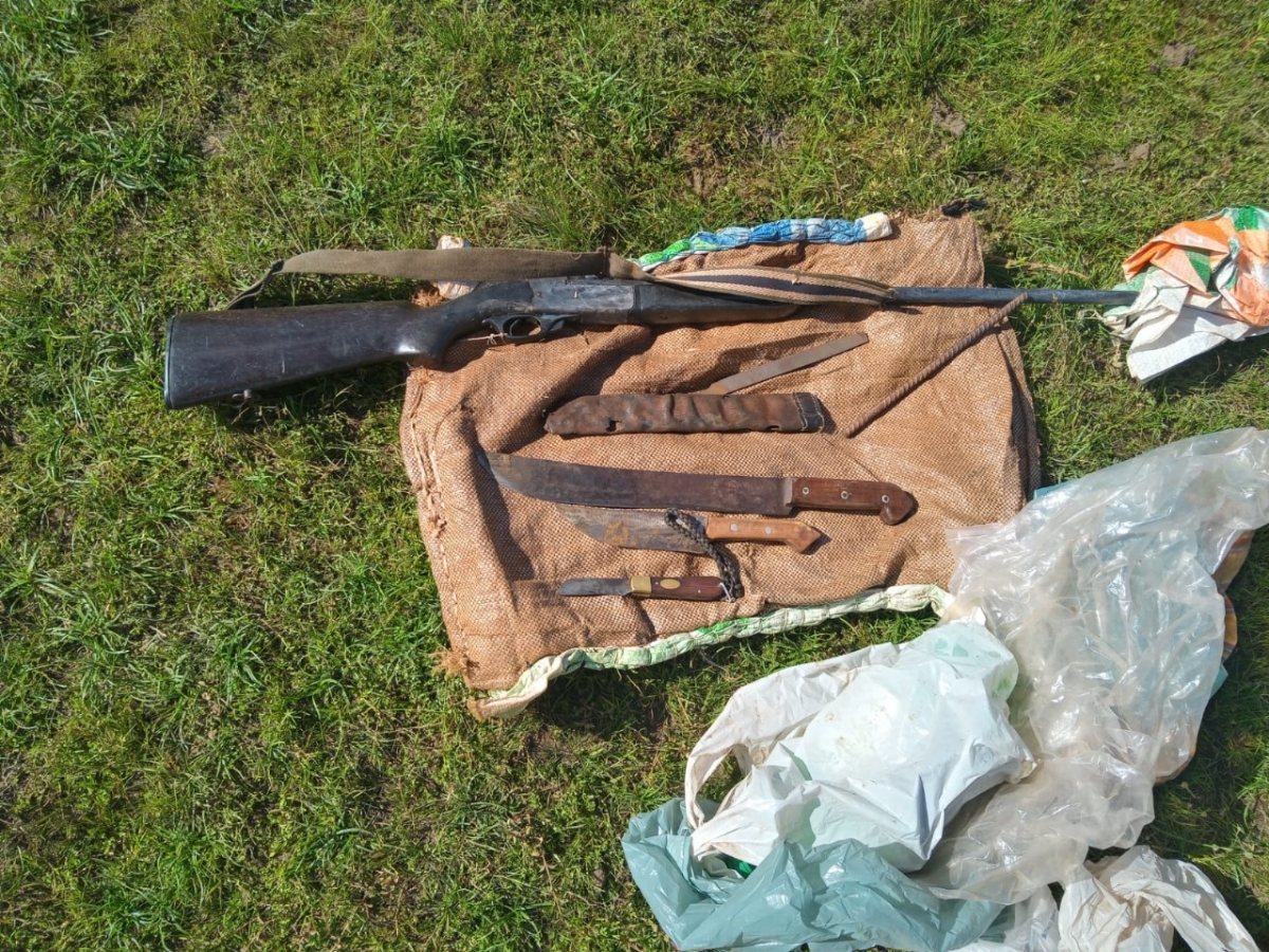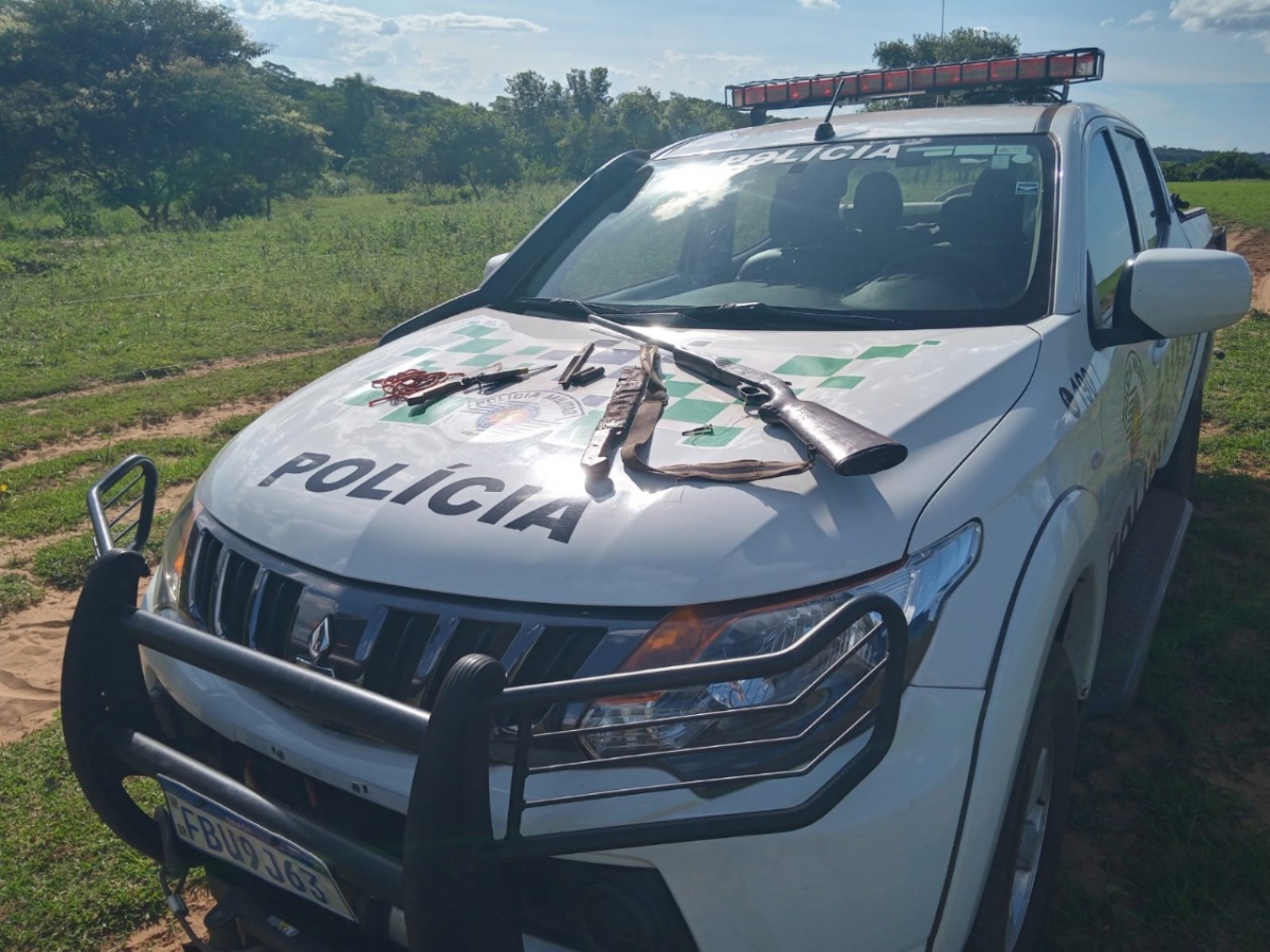 Durante buscas nas imediações, foi localizada uma espingarda cartucheira calibre .28, municiada e apta para o uso. Também na posse do caçador foi encontrado um cartucho intacto calibre .28, uma faca, um facão e sacos plásticos, que seriam utilizados para levar os animais abatidos, pois ele afirmou que estava naquele local para caçar animais nativos das espécies Capivara e Paca.