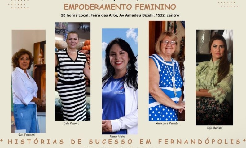 Acontece neste sábado, 9, a tradicional ‘Feira das Artes’ de Fernandópolis. Para celebrar a ‘Semana da Mulher’, o evento que ocorre a partir das 18h, na avenida Amadeu Bizelli, centro da cidade, vai receber a abertura oficial da exposição fotográfica ‘Empoderamento Feminino: Histórias de Sucesso’.