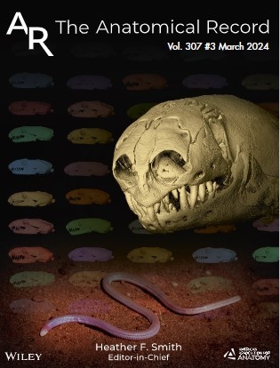 Capa da revista científica internacional “The Anatomical Record” estampando o fóssil de Fernandópolis em sua edição de março de 2024