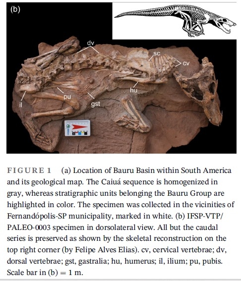 Um fóssil de 80 milhões de anos, encontrado em Fernandópolis perto do ribeirão Jagora em 2010 é destaque em artigo científico publicado na edição de março do periódico internacional “The Anatomical Record”, uma publicação da Sociedade Americana de Anatomia.