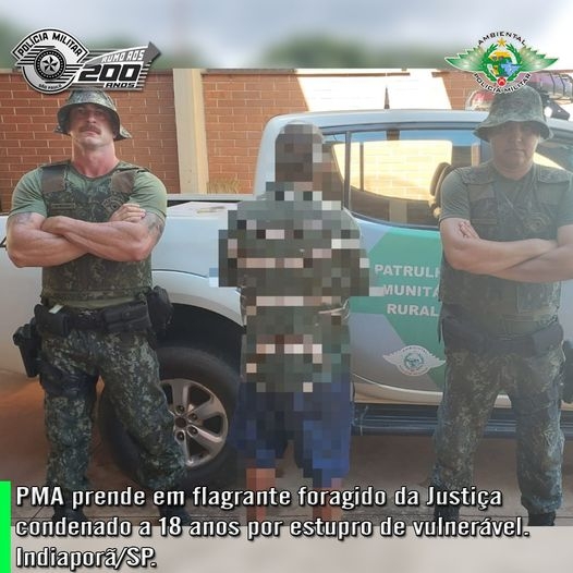 A Polícia Militar Ambiental prendeu em flagrante um homem que estava foragido da Justiça depois de ter sido condenado por crime de estupro em Indiaporã.