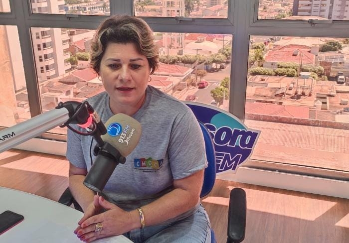 Presidente do CMDCA Caline Cebin durante entrevista na Rádio Difusora FM