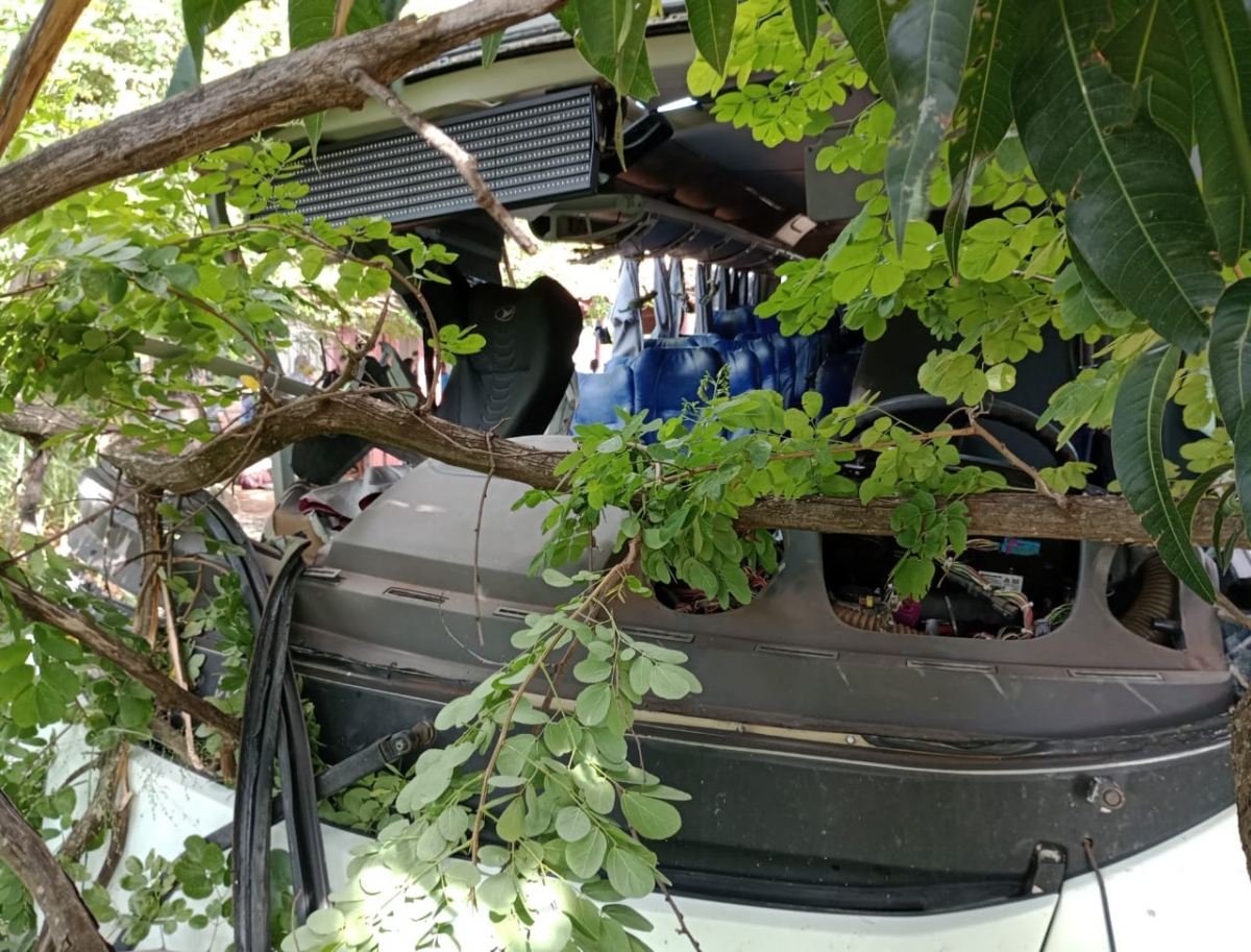 Segundo informações do motorista Ezequias Luis Ferreira, 53 anos, contou que colidiu com um caminhão, após tentar desviar de uma outra carreta que estava fechando sua passagem na rodovia. Foi o primeiro acidente que sofreu em 35 anos de prefeitura. Na batida, a parte frontal e lateral direita do ônibus ficou completamente destruída. O veículo ainda bateu na varanda da lanchonete e foi parar em uma árvore. A Polícia Cientifica está no local para exames periciais que vão apontar as causas do acidente.