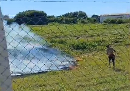 O Corpo de Bombeiros e Defesa Civil atuaram na tarde desta terça-feira, 23, em área na Avenida Getúlio Vargas em Fernandópolis para conter uma queimada a poucos metros da Escola Etec.
