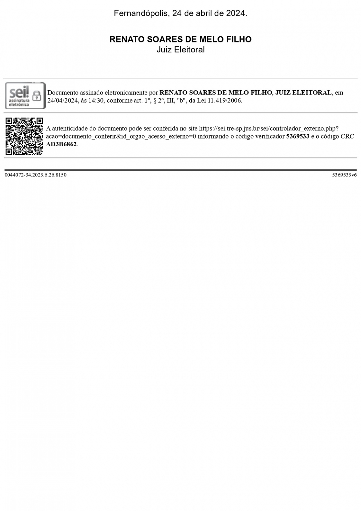 O Cartório Eleitoral de Fernandópolis emitiu comunicado assinado pelo juiz eleitoral Renato Soares de Melo Filho (veja abaixo) para alertar os eleitores que o prazo para tirar título, transferir ou a revisão eleitoral termina no dia 8 de maio.