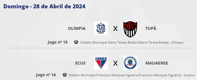 Pelo Grupo do Fefecê, o Tanabi recebe em casa a AA. Internacional de Bebedouro também neste sábado. No domingo, 10 horas, jogam Olimpia x Tupã. A segunda rodada do campeonato ainda terá mais oito jogos (confira abaixo)
