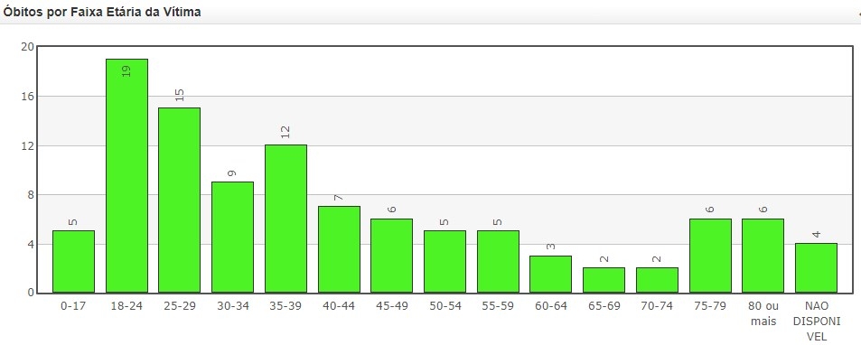 A maioria das vítimas é de jovens na faixa etária até 39 anos (veja gráficos abaixo).