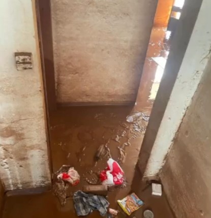 Gabriela contou que a foto foi feita do sobrado onde mora, após a primeira onda da enchente. Ela e o namorado conseguiram chegar de barco até a casa e constatar que a enchente, dessa vez chegou ao andar superior do sobrado,