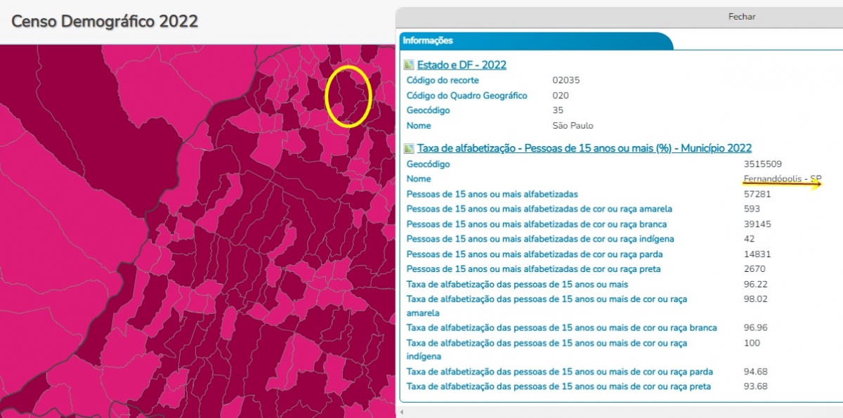 O percentual de pessoas alfabetizadas em Fernandópolis é menor na comparação à taxa estadual, mas é maior em relação ao índice nacional. É o que revelam os dados do Censo 2022 do IBGE - Instituto Brasileiro de Geografia e Estatística, divulgado nessa sexta-feira, 17.
