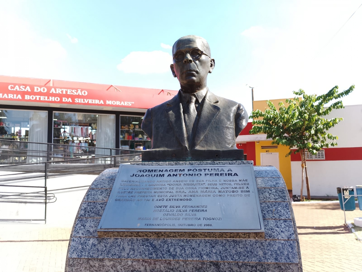 Busto do fundador Joaquim Antonio Pereira na praça central da cidade