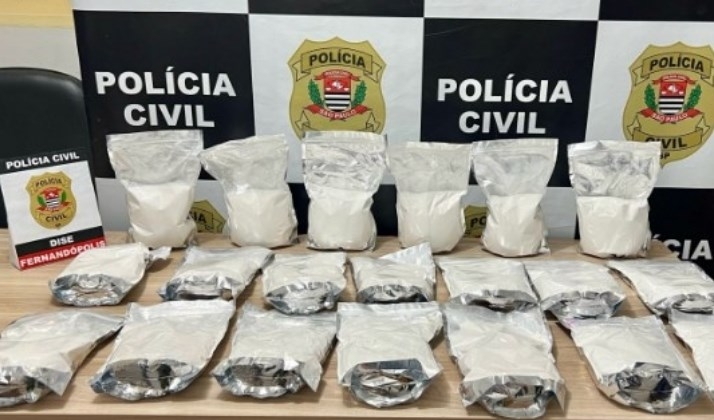 Os 20 quilos de cocaína foram apreendidos em uma operação da DISE de Fernandópolis cumprindo mandado judicial de busca domiciliar expedido pela 2ª Vara Criminal de Fernandópolis na cidade de Parisi. O traficante também foi preso . (Por Samuel Leite)