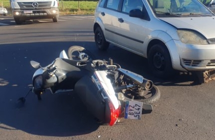 Acidente na rotatória da Expedicionários. Vitima com fratura exposta foi socorrida à Santa Casa