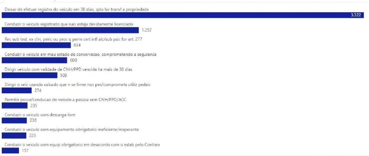 Veja abaixo o quadro das principais multas aplicadas pelo Detran em Fernandópolis de janeiro de 2020 a maio de 2024