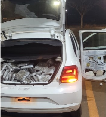 Carro Gol com a droga: 73 quilos, entre maconha e cocaína