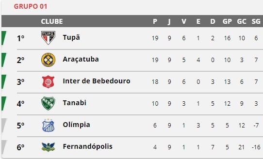 Tupã, Araçatuba, Internacional de Bebedouro e Tanabi estão classificados. Fernandópolis e Olímpia já estão eliminados.
