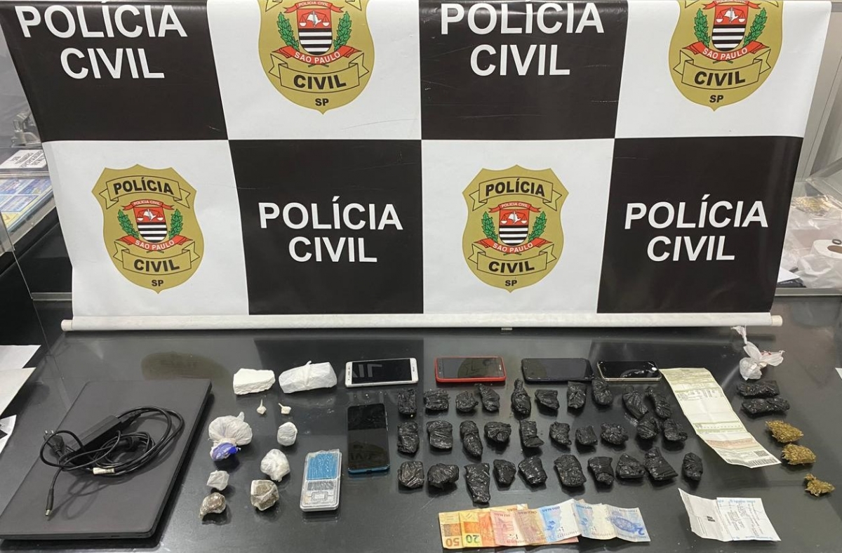 Um dos investigados foi preso em flagrante. Foram apreendidas 43 porções prontas de maconha que pesaram pouco mais de 575 gramas, além de porções de cocaína que pesaram 90 gramas, aparelhos celulares e dinheiro. Três investigados não foram localizados. Fato apresentado na CPJ de Jales.