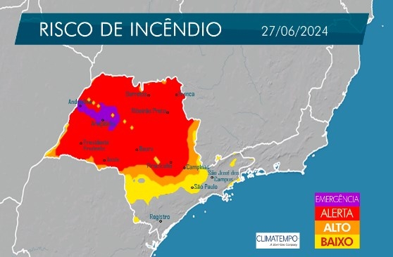 Fernandópolis e a região noroeste foram colocadas em situação de emergência para o risco de incêndios pela Defesa Civil do Estado de São Paulo nesta quarta-feira, 26.