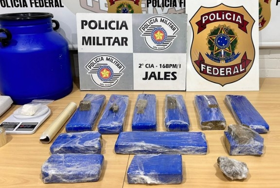 A Polícia Militar apreendeu, na tarde desta quinta-feira, 4, mais de nove quilos de drogas em uma residência na cidade de Jales. No local, os policiais apreenderam com uma mulher de 28 anos, egressa do sistema penal, além de 9,2kg de maconha e 50 gramas de cocaína, uma balança de precisão e material comumente utilizado para embalar a droga em pequenas porções. O marido da presa também encontra-se cumprindo pena atualmente por tráfico de drogas.