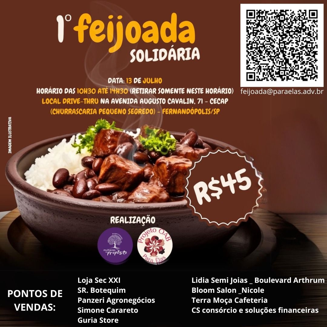 Enquanto trabalham no projeto da cooperativa, “OAB para Elas” e “Mulheres de Propósito” estão juntas na organização da 1ª Feijoada Solidária que acontece no sábado, 13. “Estamos com a meta de vender 500 marmitex de feijoada, tamanho G, para levantar recursos para os nossos projetos. O voucher custa R$ 45”, disse Vanessa. A entrega será no sistema drive-thru no Restaurante Pequeno Segredo na avenida Augusto Cavalin.