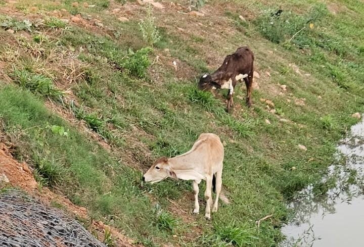 Quem foi agora à tarde para o passeio, caminhada ou apenas curtir o por do sol na orla da represa Beira Rio voltou a se deparar com uma cena que ficou comum nos últimos dias: a de bezerros invadindo a área. A apresentadora da Rádio Dfiusora FM, Clara Moreno, registrou o flagrante. Os animais, em busca de um pouco de alimento acabam pisoteando árvores que foram plantadas na área. Frequentadores chegaram a reclamar de estrume dos animais pela ciclovia e pista de caminhada.