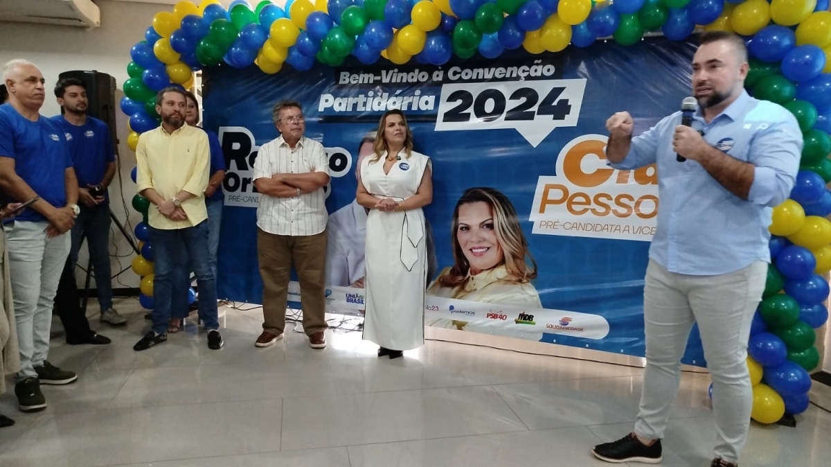 Rodrigo Ortunho discursa durante convenção na manhã deste sábado