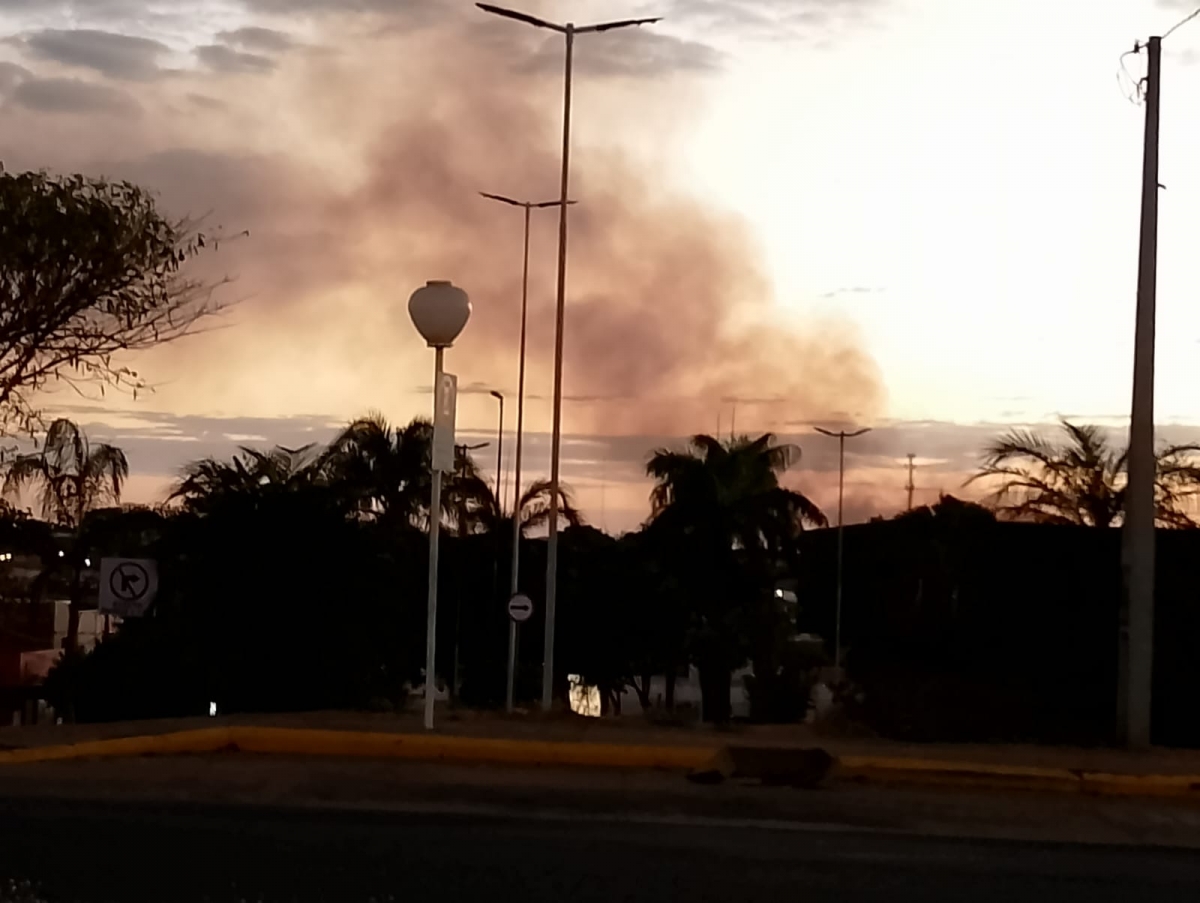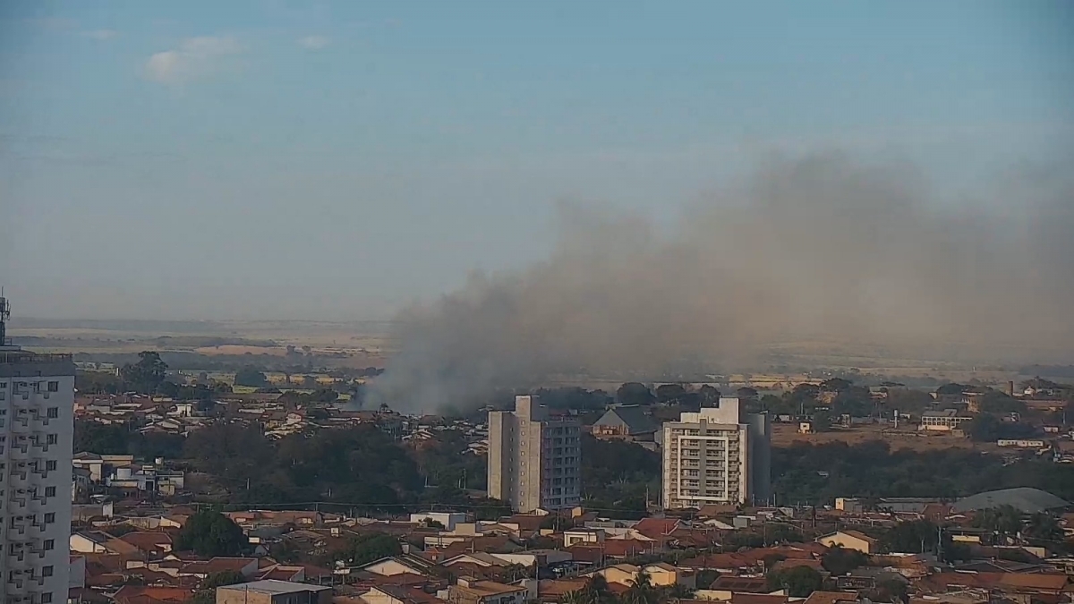 Fumaça podia ser vista de vários pontos da cidade. Imagem captada pela câmera da Rádio Difusora FM