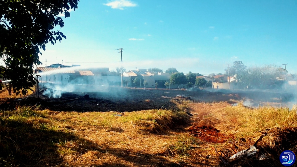 Área extensa foi queimada próximo a antiga estação ferroviária, zona sul da cidade. Fogo chegou próximo de residências