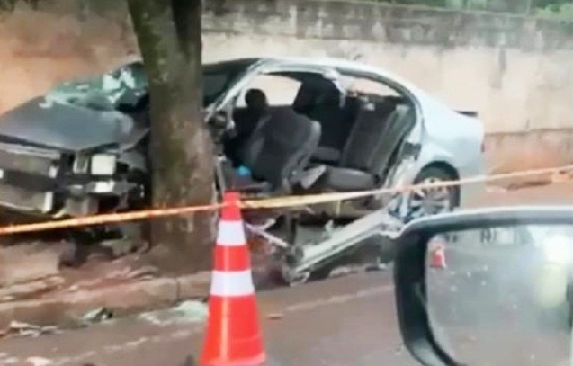 Carro bateu contra a árvore em Nova Aliança: dois feridos e um adolescente morto