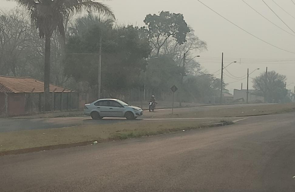 Imagem da Avenida Rubens Padilha Meato na manhã de sábado, 24, na altura do Horto Florestal com muita fumaça no ar