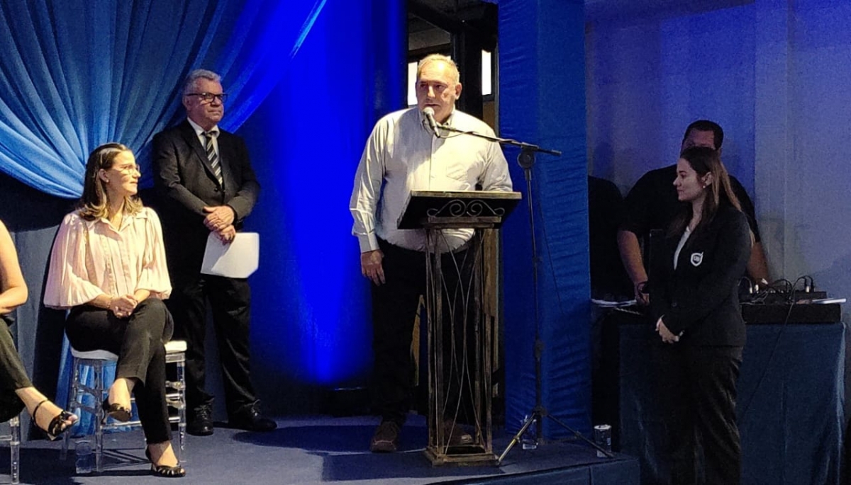 Médico Márcio Gaggini, o homenageado da noitee, discursa na solenidade