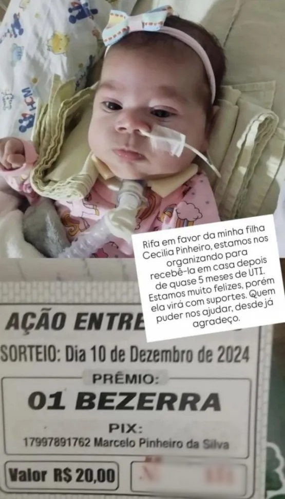 Para manter o tratamento e qualidade de vida para Cecília, a família precisará manter um suporte de atendimento. Por isso, a mobilização na rede social para ajudar Cecilia.