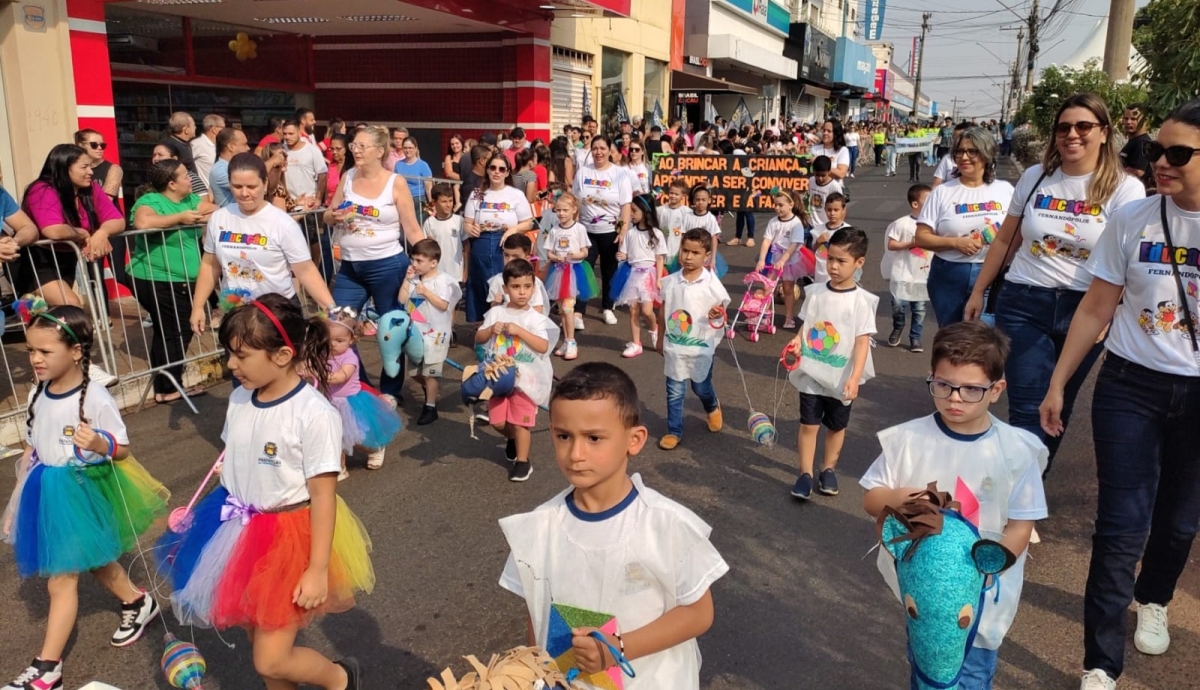 Fernandópolis mantém a tradição do desfile na comemoração do 7 de setembro da Independência do Brasil. O feriado levou muita gente para a Rua Brasil. Com o tema "Educação: a base de tudop", as escolas da rede municipal apresentaram projetos educacionais. O prefeito André Pessuto acompanhou o desfile ao lado de autoridades.